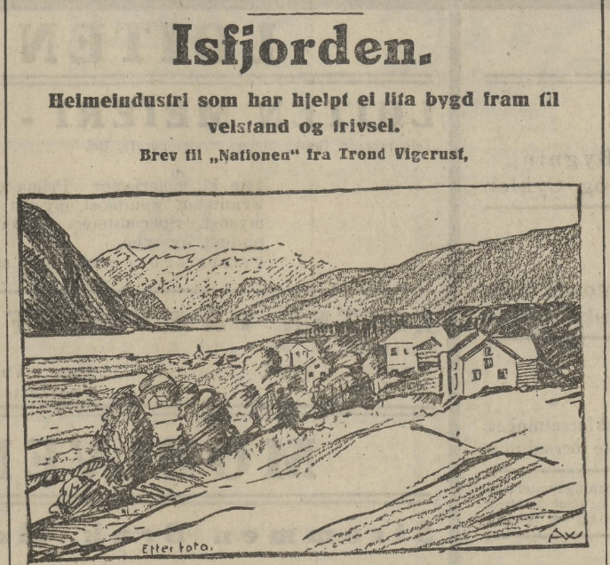 "Jeg reiste engang oppe i Romsdalen, og der fikk jeg høre om at i en del av den, oppe i Isdalen, levde nu hele befolkningen for en stor del av å sy klær til fiskerne i Lofoten", fortalte Nansen. Med Isdalen mente han nok Isfjorden, og folket der inne var ifølge ham et eksempel på at «det er de enkelte menns tiltak samfundet skylder sin fremgang i det lange løp; de er det som har begynt ethvert stort fremskritt i menneskehetens historie."