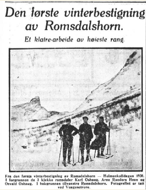 Lokale klatrepionerer hadde også funnet seg godt til rette i vinterlige Vengedalen. Arne Randers Heen skrev et leserinnlegg i Åndalsnes Avis i 1930 for å lokke sine sambygdingder til denne dalen: “en fornøielig vintertur er det å gå op på Lillefjellet, hvorfra Vengetindene, Hornet og Trolltindene tar sig særlig majestetisk ut. En må virkelig bli høitidelig stemt når en står innunder disse tre storheter, - de mest berømte i Nord-Europa.”